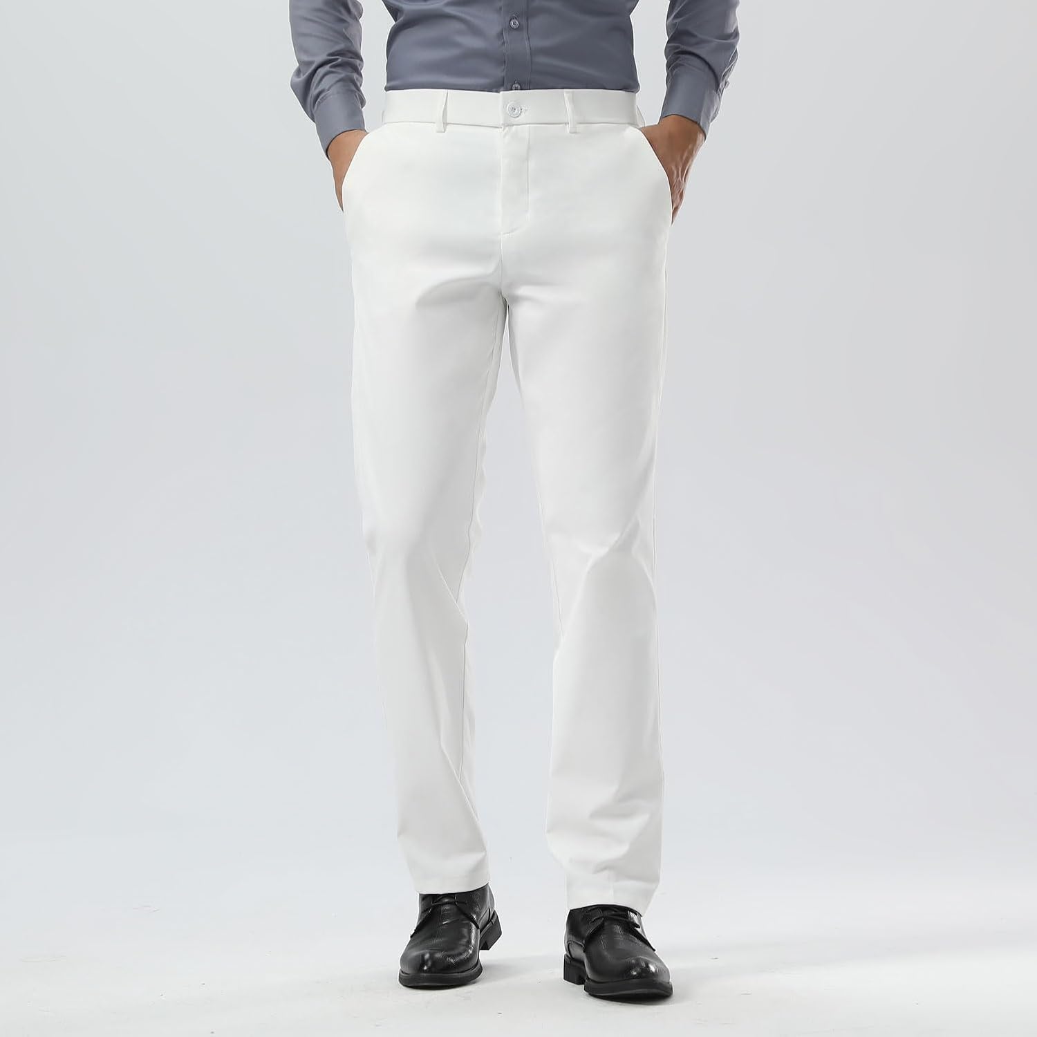 - The fabric performance of these men’s khaki pants combination of moisture wicking and stretch will uphold you to move with ease. These dress pants will become your favorite choice in your closet! You’ll love the sleek appearance these chinos pants men have to offer just as much as the soft fabric construction with spandex, giving you a fit that feels comfortable and right.