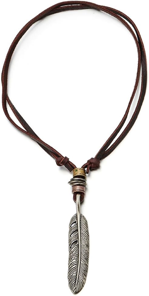 Retro Style Feather Pendant Unisex Necklace for Mens Womens with Adjustable Leather Cord